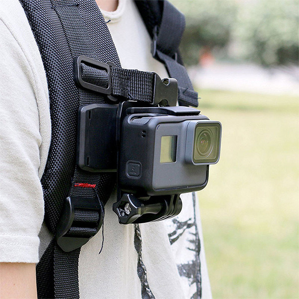 • BACKPACK CLAMP: Wear your Gopro on your backpack and catch all the action hands free! Simple clip - on operation holds tight to the strap and won't interfere with your movements.