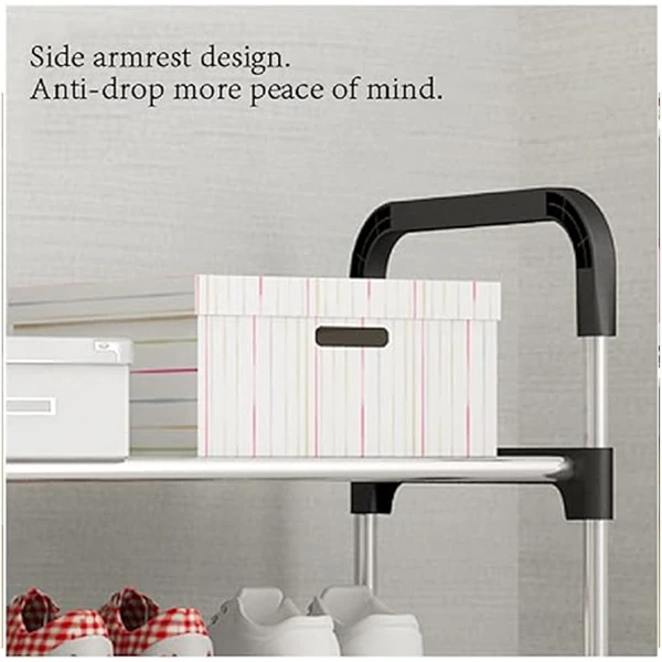 • The main body is made of thickened galvanized steel pipe and the side is made of one-piece PP card sleeve. This shoe rack is very durable and stronger, and can store shoes and heavier items on the top particle board.