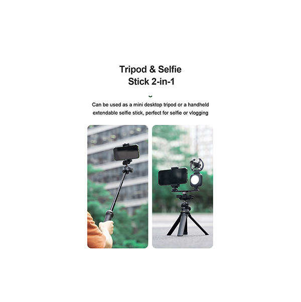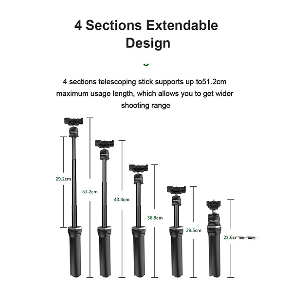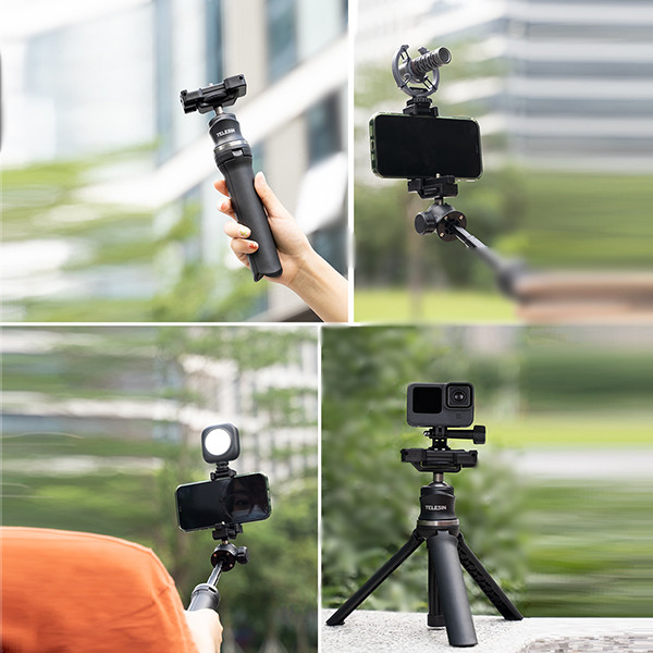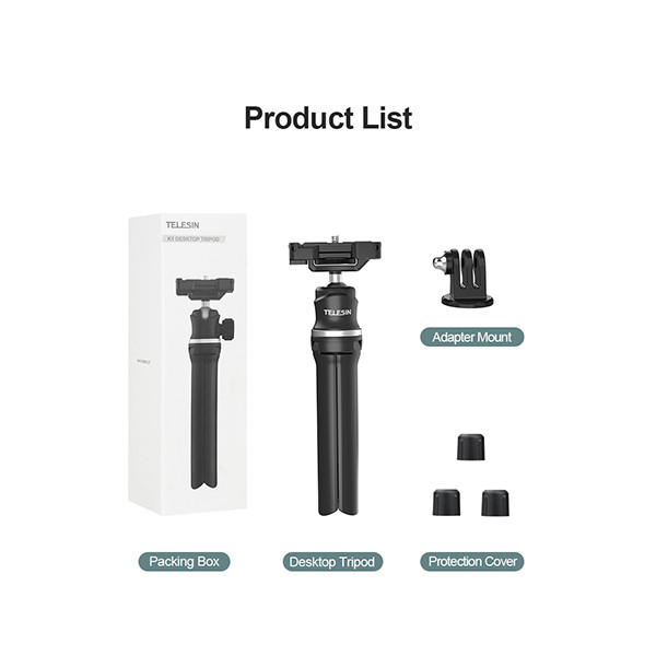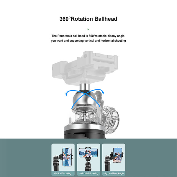 【2 in 1 Tripod & Selfie Stick】 TELESIN Multifunctional sport camera tripod with 360 rotary ball head and Phone clip( its retract length is 22.6cm), Not only could be a mini Selfie Stick Pole, but also could be a Tripod, perfectly work as a handle for selfie and as a table tripod for a photography and video shooting, meet your various demands.