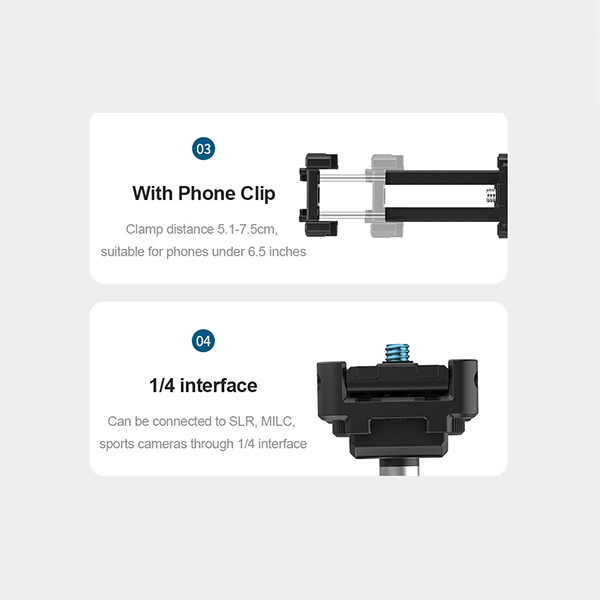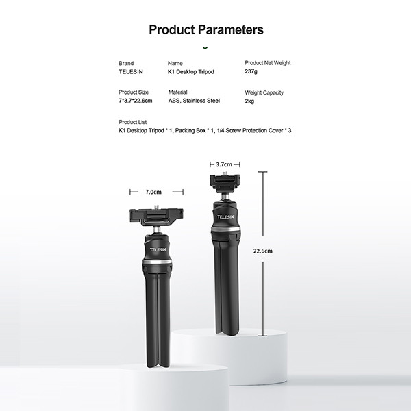 【Extendable/Lightweight/Portable】 This desktop tripod can be stretched from 13.4cm to 25.6cm, super lightweight, very easy to carry and storage.