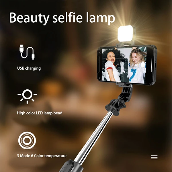 Take picture-perfect selfies and group shots with the Selfie Stick with Light. It has 3 colour temperature options. Long press to open the fill light, and short press to adjust brightness levels. Lightweight, durable silicone design.