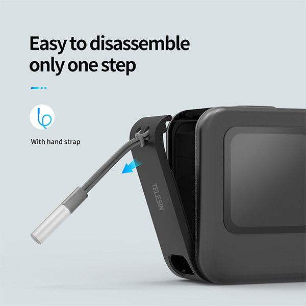 1. TELESIN Battery Cover specifically designed for GoPro Hero 9 Black. Please watch the video for usage guideline and comparing with the original cover. Please do not take off the strap or it will be difficult to take off the battery cover.