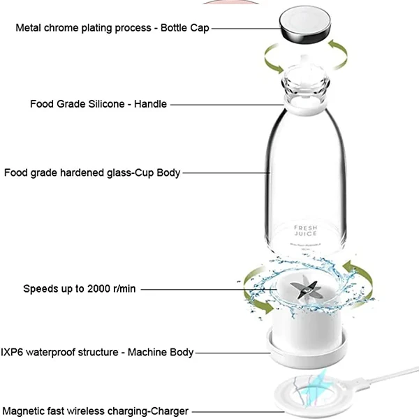 【Charging and Portable】The blender can be easily charged by power bank, laptop, computer or other USB devices, but also can be used as a power bank for your device and supports a phone holder, allowing you to travel anytime, anywhere.