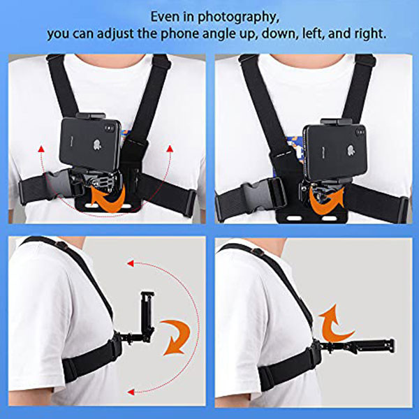 [Angle adjustable ]:Camera chest harness with a mount that can be disassembled,you can lay your smartphone horizontally and vertically,so you can freely adjust the angle according to the shooting environment.