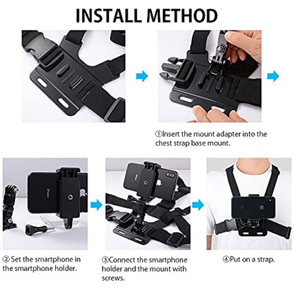 [Wide Compatiblity]:The chest mount harness is not only suitable for smartphones with a width of 5.6 to 8.8 cm,but also for all GoPro.For example,iPhone XS,XS Max,iPhone 8,Samsung Galaxy S6,Huawei and sports cameras.Such as GoPro Hero5/4/4 session,LEVIN, MUSON,DJI Osmo Action,SJCAM,DBPOWER,etc.