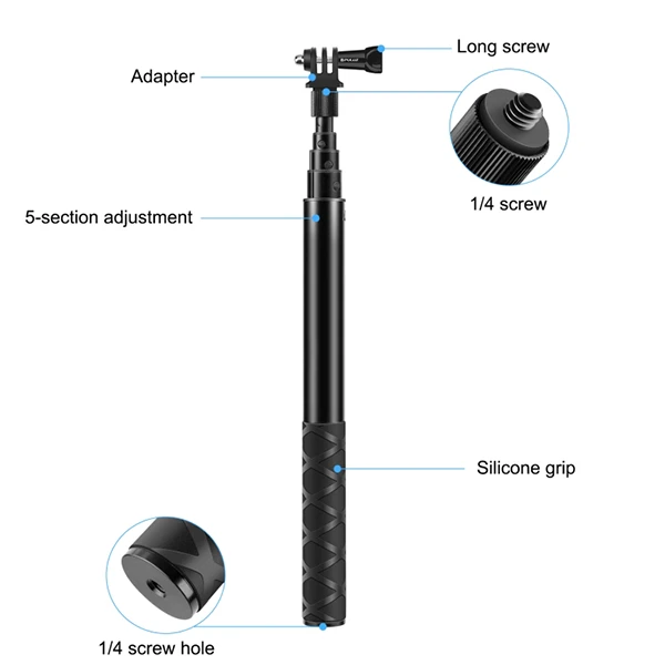 4. The base has a 1/4 screw hole, which can be connected to a triangular clip or an extension rod, and the top is a 1/4 screw, which can be connected to a camera, mobile phone clip or adapter, etc.;