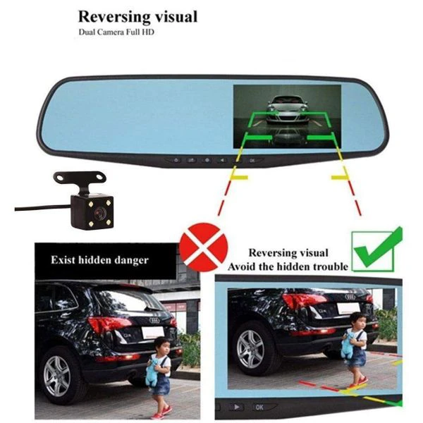 Rearview mirror dual Channel Recorder - Vehicle Blackbox DVR - 4.3 inch Car Camera - Fabvariety