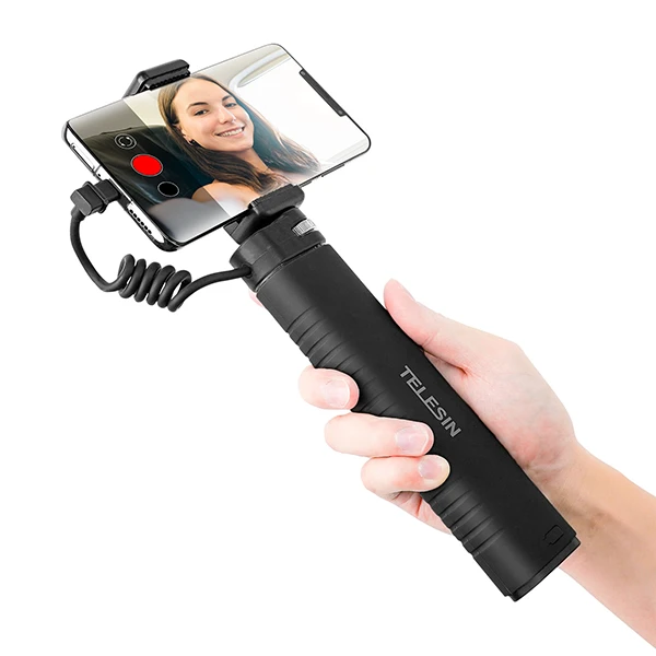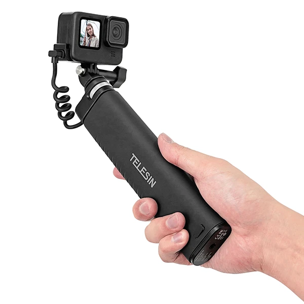 Power bank for Action Camera: telesin rechargeable selfie stick is equipped with a usb port, which allows you to charge your favorite devices and videos without having to take photos or videos. ✨ Gopro selfie powerbank: the gopro selfie stick is powered by ac adapter to allow you to charge your camera and enjoy the music while you are shooting. ✨ Selfie stick and power bank: the sports action camera can be used with a selfie stick or power bank. it is compatible with most smartphones and tablets. ✨ Universal: the sport action selfie stick is compatible with most sports cameras, such as dji action camera, gopro, smart phone, etc. ✨ Maximum durability: the telesin charging selfie stick is made of high-quality abs material, which is durable and can be used for a long time.