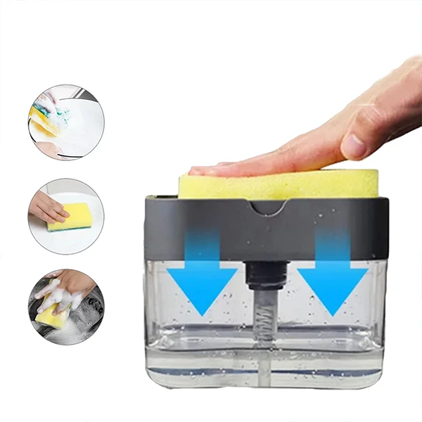 It combines a soap dispenser and sponge holder in one convenient unit, keeping your countertop organized and clutter-free.