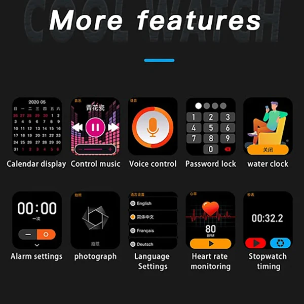 1.86 inch large HD color touch screen 1.86 inch large color screen full screen touch and hand slide. Ensures smooth operation and 240*280 resolution. Our screens have excellent color saturation and reproduction. Personalize your smartwatch for men and women and create your own stylish smartwatch.
