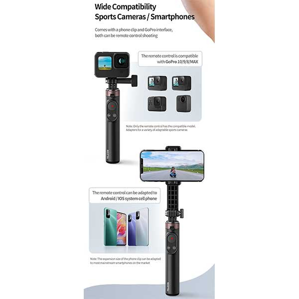 【Selfie Stick tripod combo】- Not only want to take the selfie, but also Wanna take pictures/videos with excellent stability while liberating your hands. TELESIN has you covered with our all-in-one professional combo to take your filming to next level. Perfect for selfies, group photos, adventure travel, vlogging, YouTube videos, podcasts, Facebook Live, FaceTime, Instagram, live streaming.