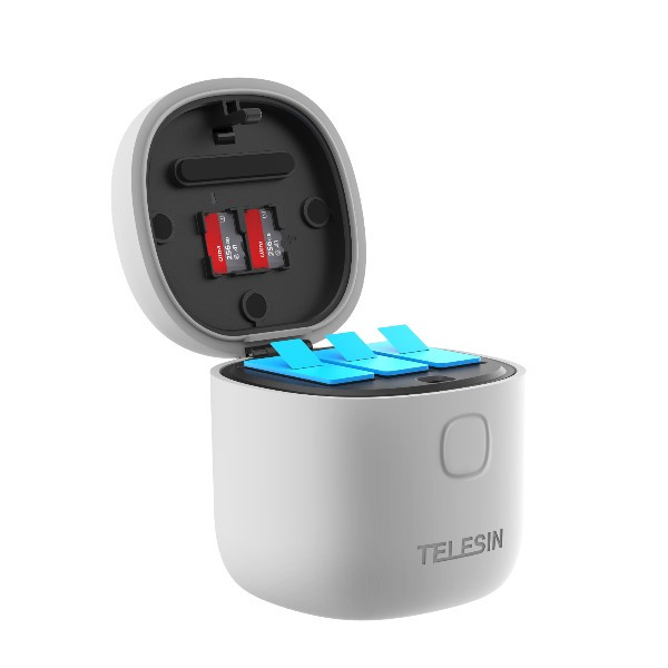 【THREE SOLUTIONS IN ONE】You can use Allin Box as CHARGER to simultaneously charge 3 GoPro Hero 9, 10 & 11, 12 black batteries, as a high-speed SD Card Reader, and as a STORAGE BOX to store 3 batteries and 3 SD cards. 【FASHION AND COMPACT DESIGN】Vivid's unique design makes it stand out from the other brand chargers. This Compact and Lightweight Charger with dacron lanyard allows you to store it in your backpack/camera carry bag/luggage. 【PLUS PROTECTION】Allin Box features IP54 Waterproof, the batteries and SD cards will be stored securely and stably, keeps water drops, dust and debris out of the charger box while in storage and transit. All materials are ENVIRONMENTALLY FRIENDLY and NON-POLLUTING! 【POWER AND COMPATIBILITY】 Simply boost the running time of your GoPro, keep your camera running for longer with Allin Box Charger and 2-pack 1750mAh replacement batteries. Compatible with GoPro Hero 12, 11, 10 & Hero 9 Black.