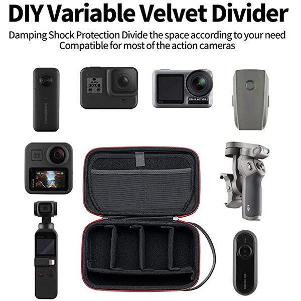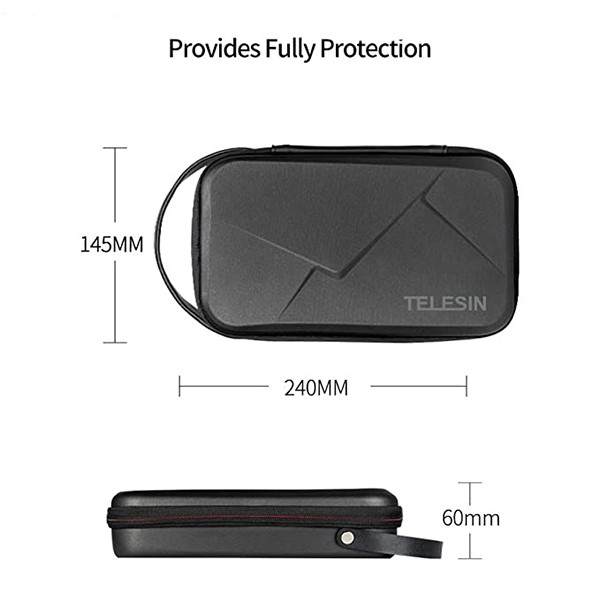 1. TELESIN Hard PU Storage Carry Case specially designed for GoPro , DJI Osmo Action, Osmo Pocket, Insta 360 One X, Insta 360 One R Twin Edition and more other small action cameras and accessories bundles like selfie stick, camera mounts, batteries, charger, housing case, lens filter, charger cable, ect...