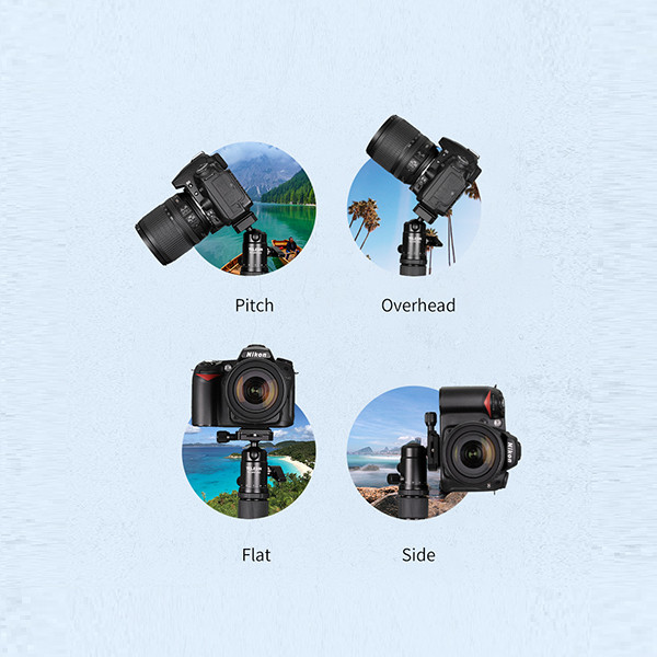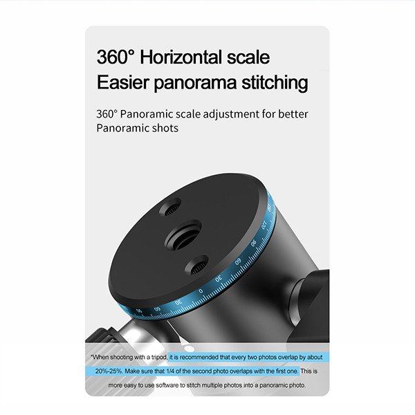 * Ball head all-round of shooting,360° rotation, providing you with more creative angles, side, overhead, pitch, flat. 360° horizontal scale, easier panorama stitching.