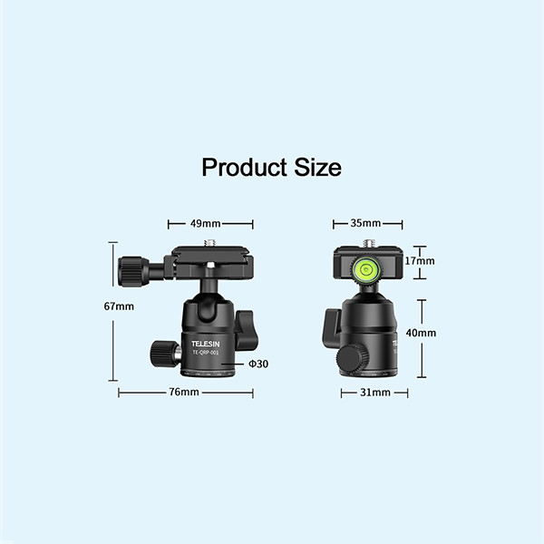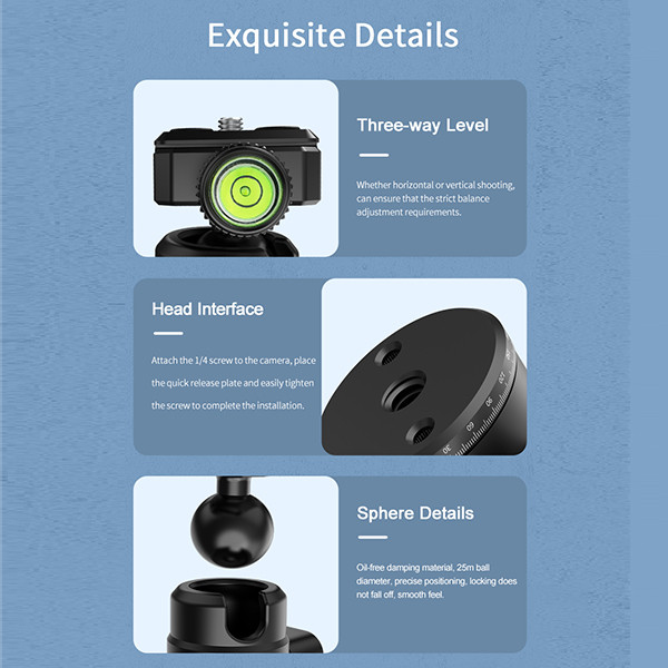 * Universal 3/8 screw interface, compatible with most tripods on the market,25mm ball diameter head bottom diameter 36mm,22.5mm ball diameter head bottom diameter 31mm, strong locking.