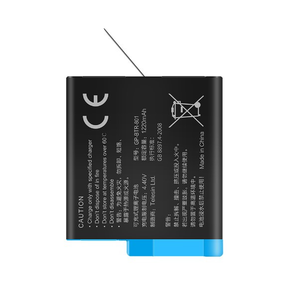 COMPATIBILITY: TELESIN Decoded Lithium battery and Charger Kit is fully compatible with Original GoPro Hero 8/7/6/5 black. Note: Please do not remove the black tape on top of the battery, it’s for taking out battery easily from the charger.