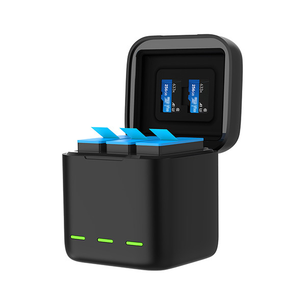 •  3-Channel mini USB battery charger for GoPro Hero 5, Hero 6, Hero 7 & Hero 8, can simultaneously charge up to 3 batteries, also designed as a storage box to store your batteries.